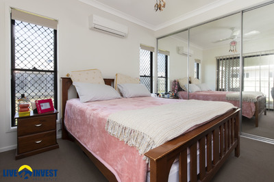 • The Master bedroom features a convenient en-suite with a full wall (3 doors) of mirror robes.