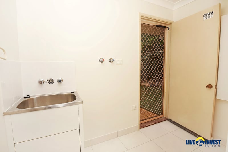 The laundry is internal, located at the rear of the home with extra cupboards and fitted ironing board.